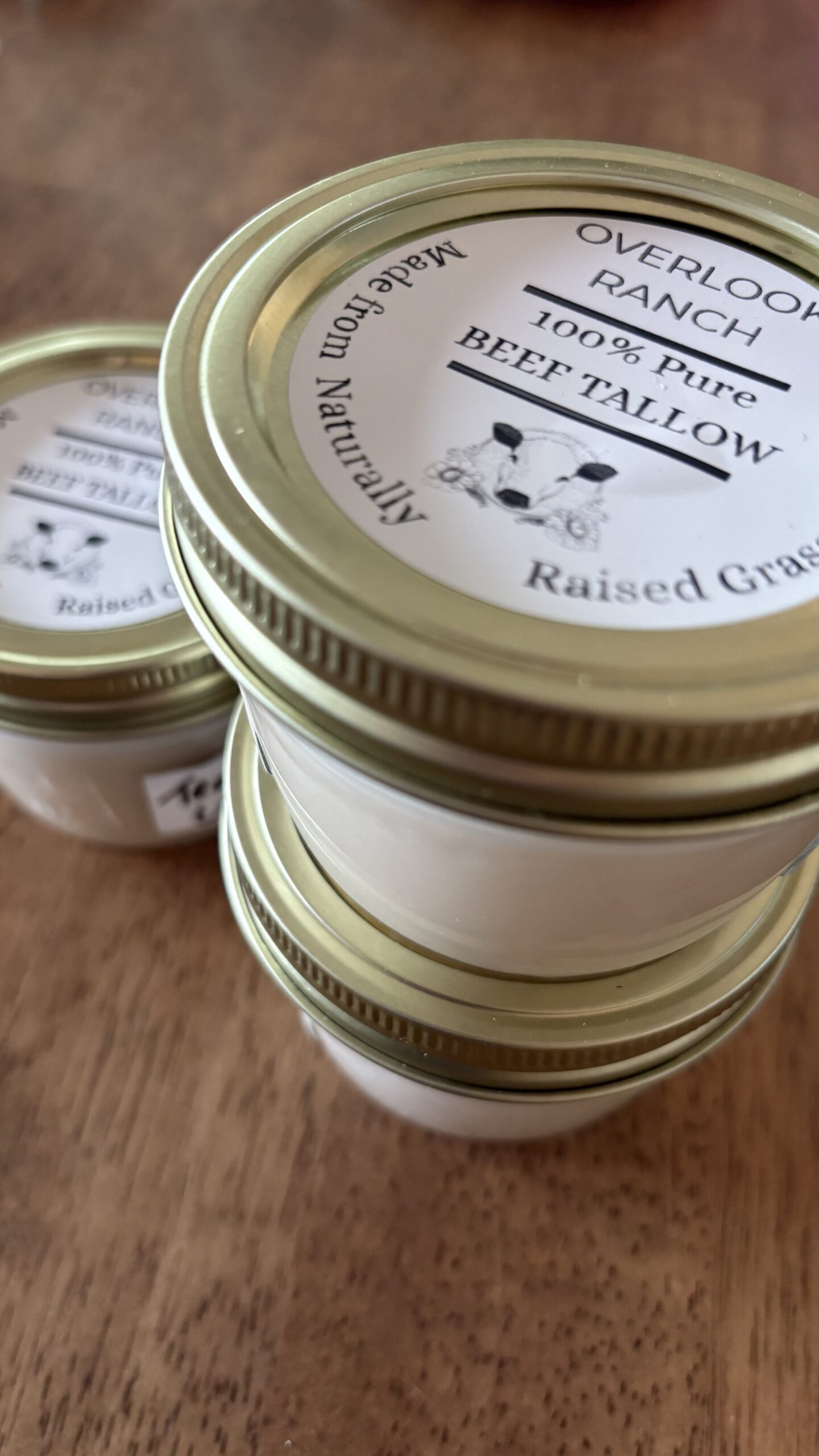 100% Grass Fed Beef Tallow. Nothing added. 100% pure tallow. Great for cooking or skin care products. Made from rendered down bones. Small batch. Wet rendereed and filtered 4x’s. January 2026. 5oz