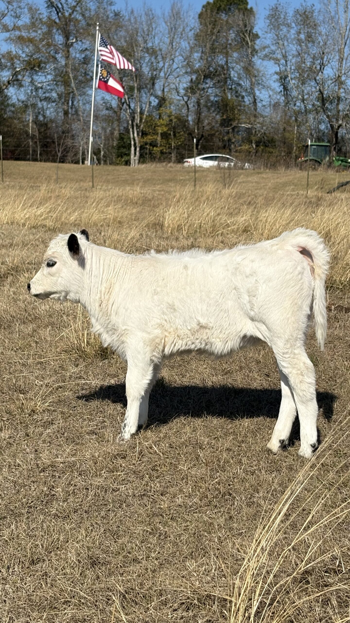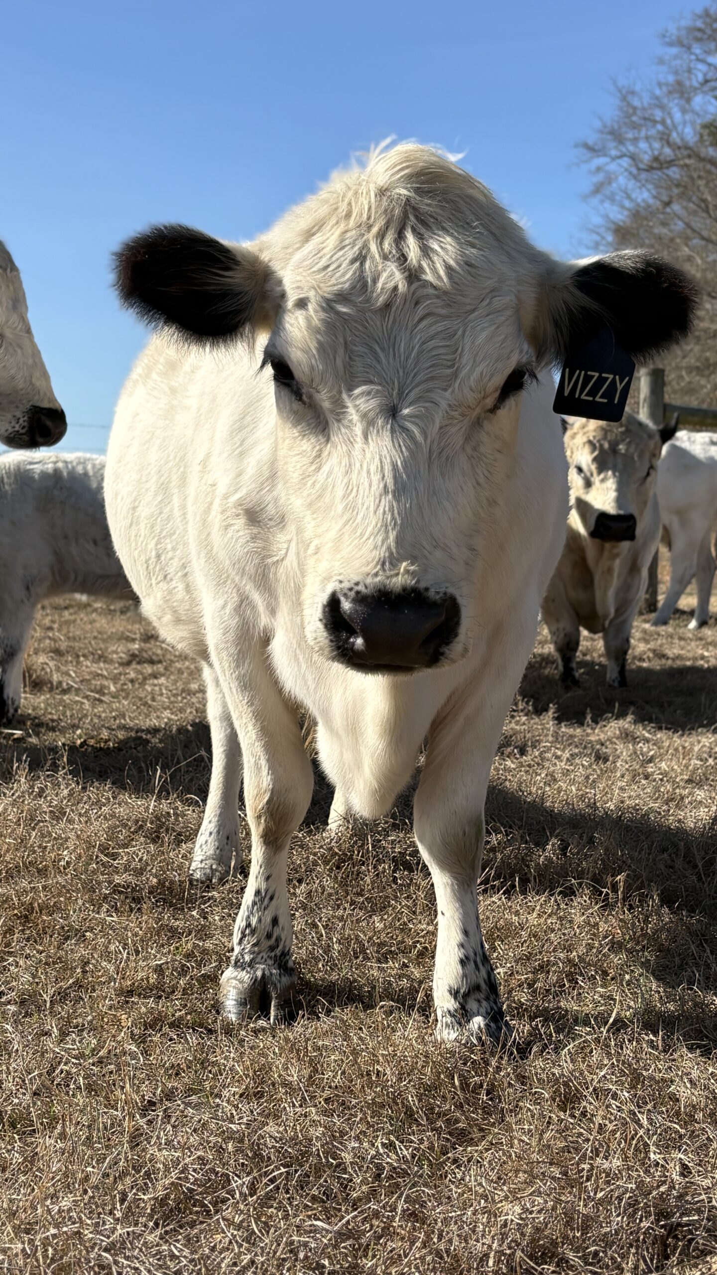 BLF Vizzy x Bledsoe’s Little Man with heifer calf on her side OLR Onyx. Calf Born 10/30/25. NO assistance. Great Momma cow, full milk bag. Beautiful classic BWP Markings. Registered ABWPA. Transfer of ownership upon sale.